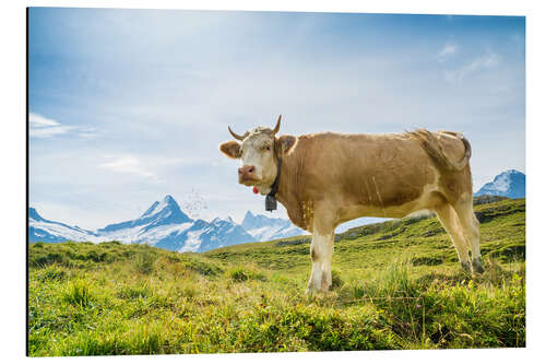 Magnettafel Schweizer Kuh mit Schreckhorn in den Berner Alpen