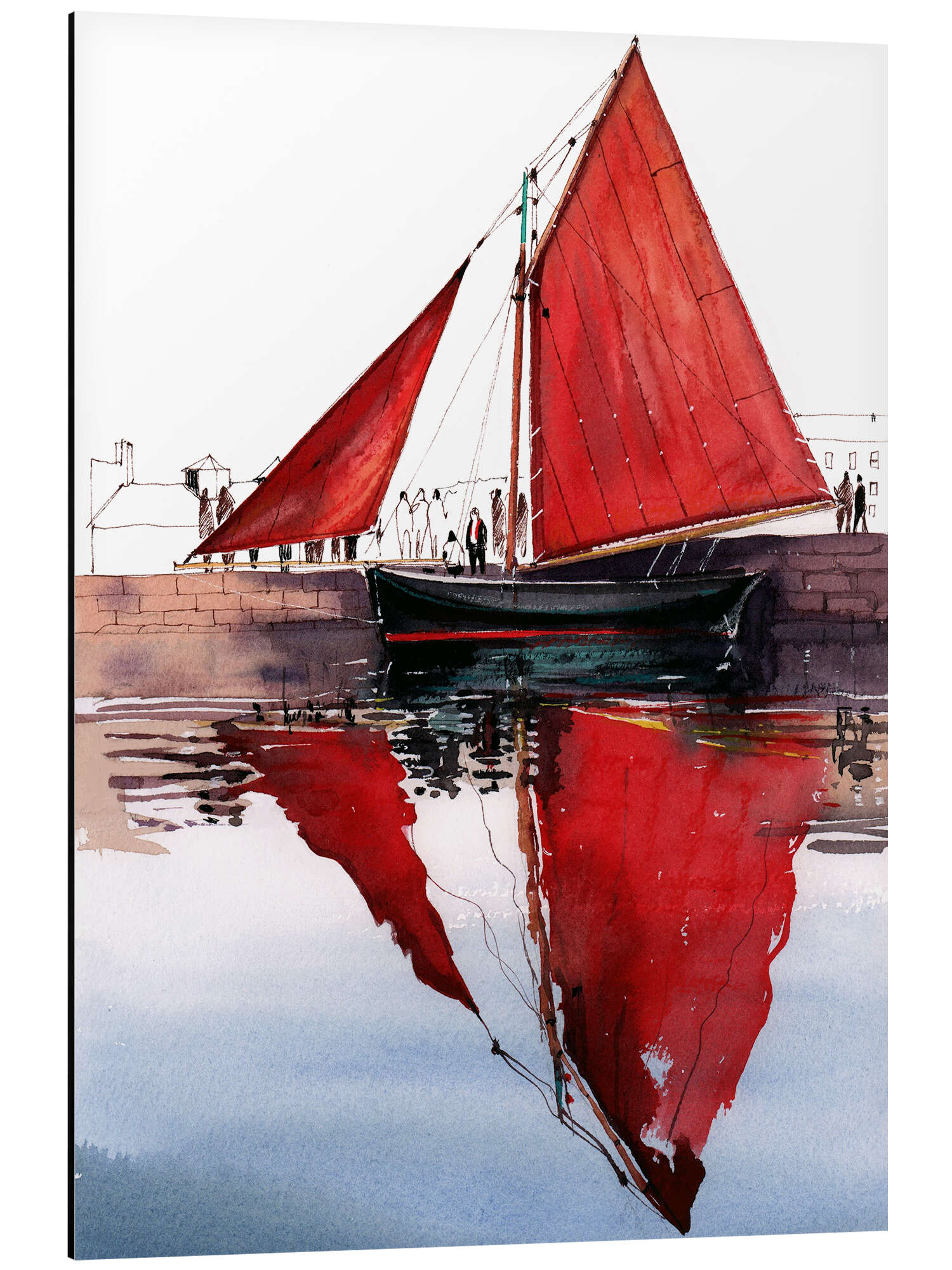 Posterlounge   Wandbilder   Malerei   Aquarell Malerei   Anastasia Mamoshina   Magnettafel Rote Segelboot-Hooker Galway Irland