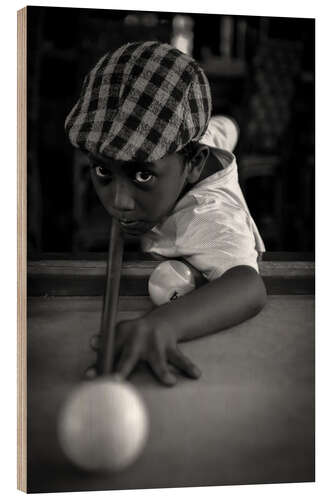 Holzbild Junge beim Billard