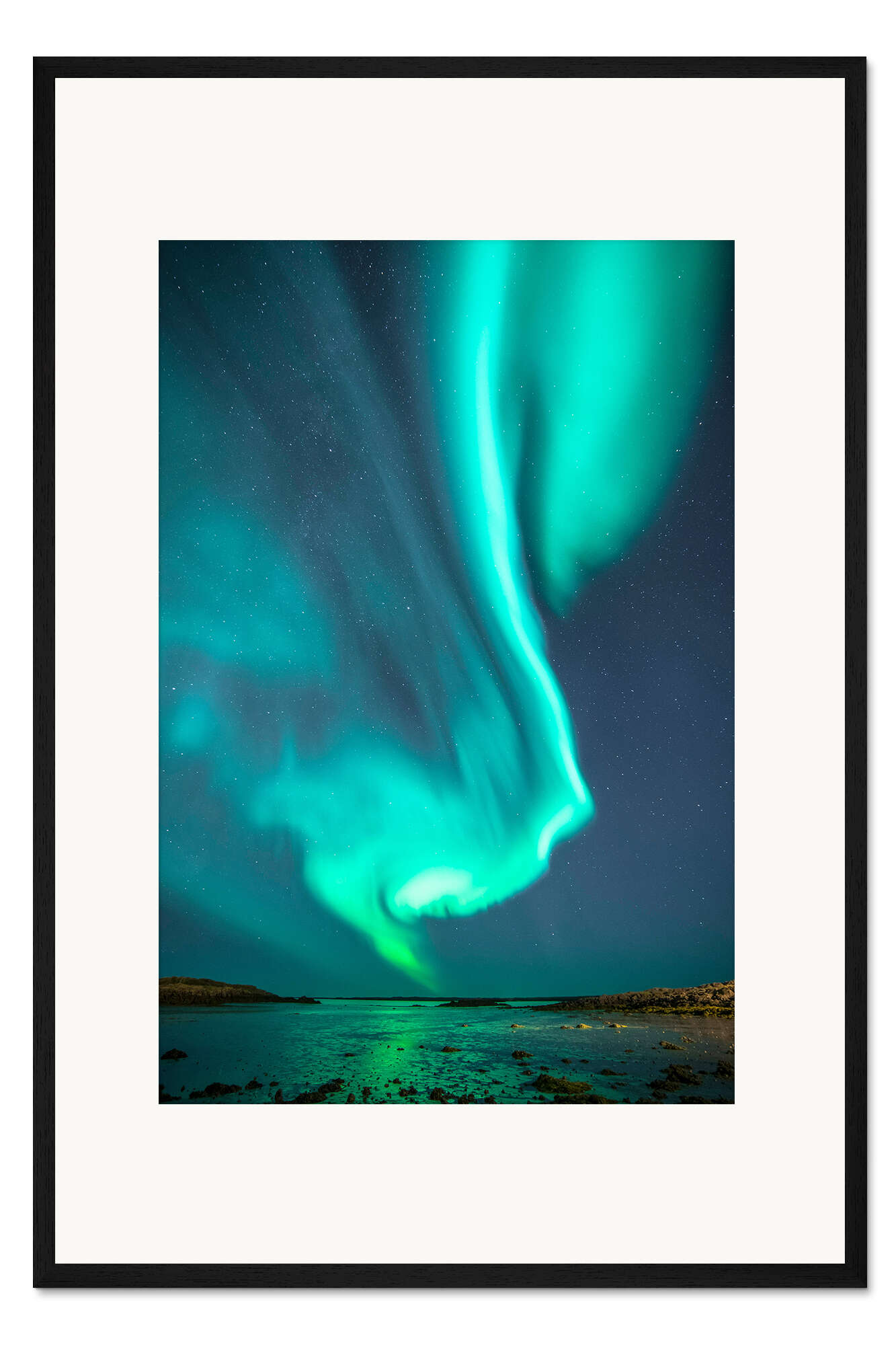 Posterlounge   Wandbilder   Fotografie   Christof Steirer   Gerahmter Kunstdruck Nordlichter über Borgarnes