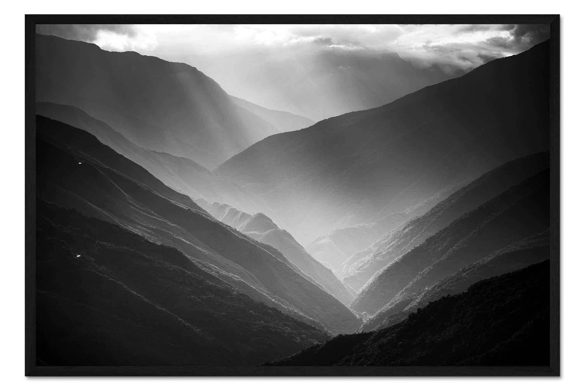 Posterlounge   Wandbilder   Schwarz-Weiß   Matthew Williams-Ellis   Gerahmter Kunstdruck Erste Sonnenstrahlen im Tal