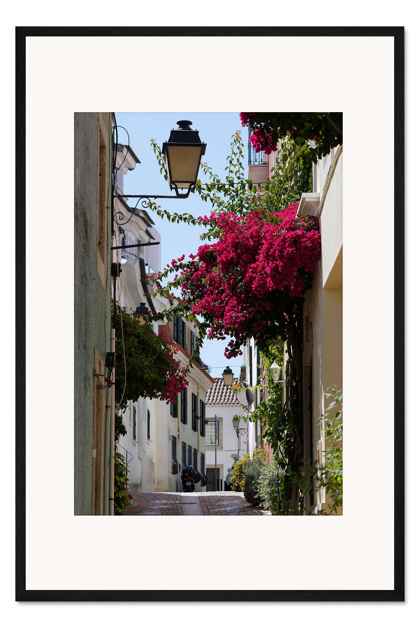 Posterlounge   Wandbilder   Fotografie   Alexander Pöschel   Gerahmter Kunstdruck Kleine Gasse mit blühender roter Bougainvillea