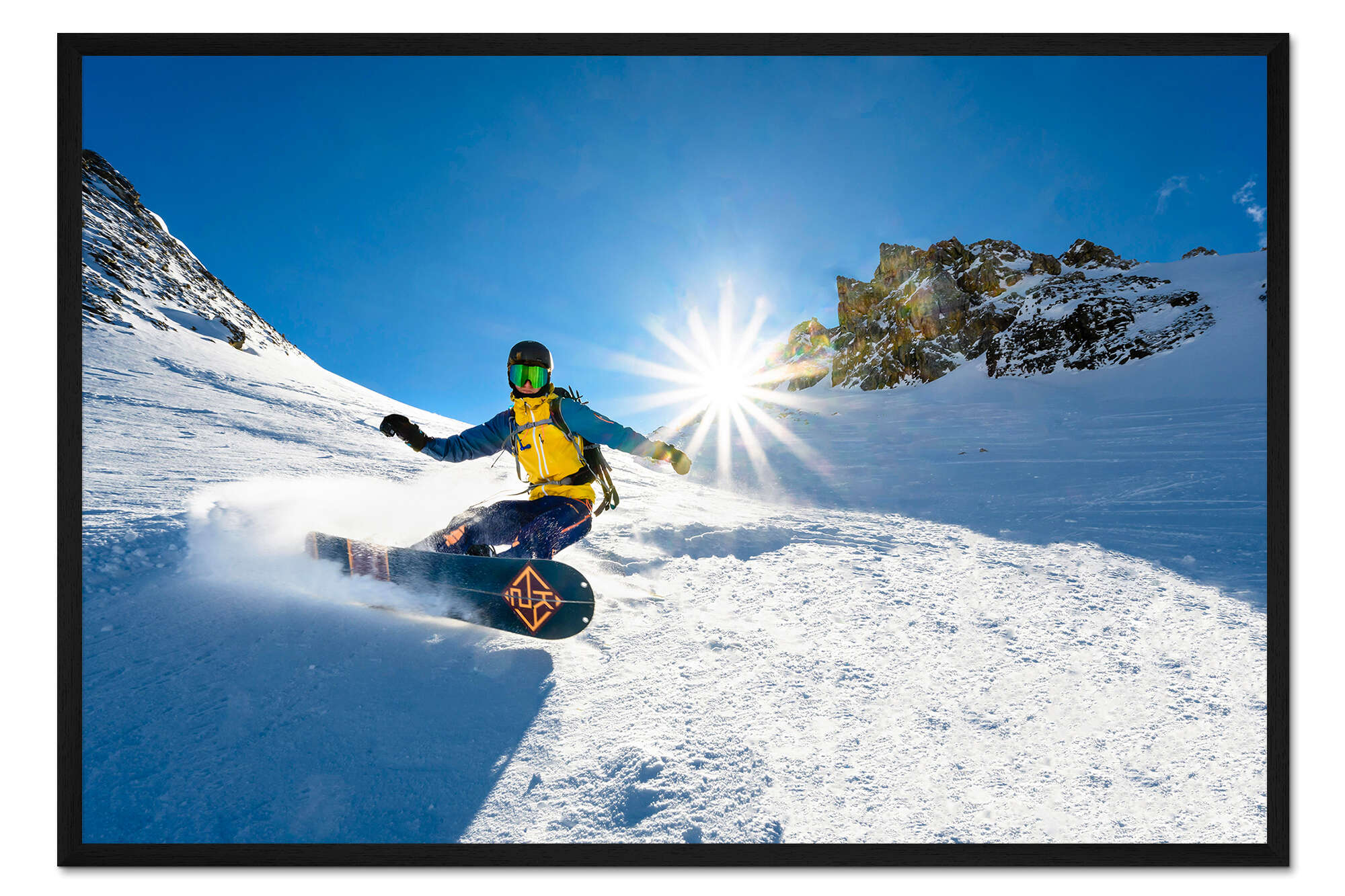 Posterlounge   Wandbilder   Fotografie   Moritz Wolf   Gerahmter Kunstdruck Snowboardfahrer mit Splitboard fährt im Schnee