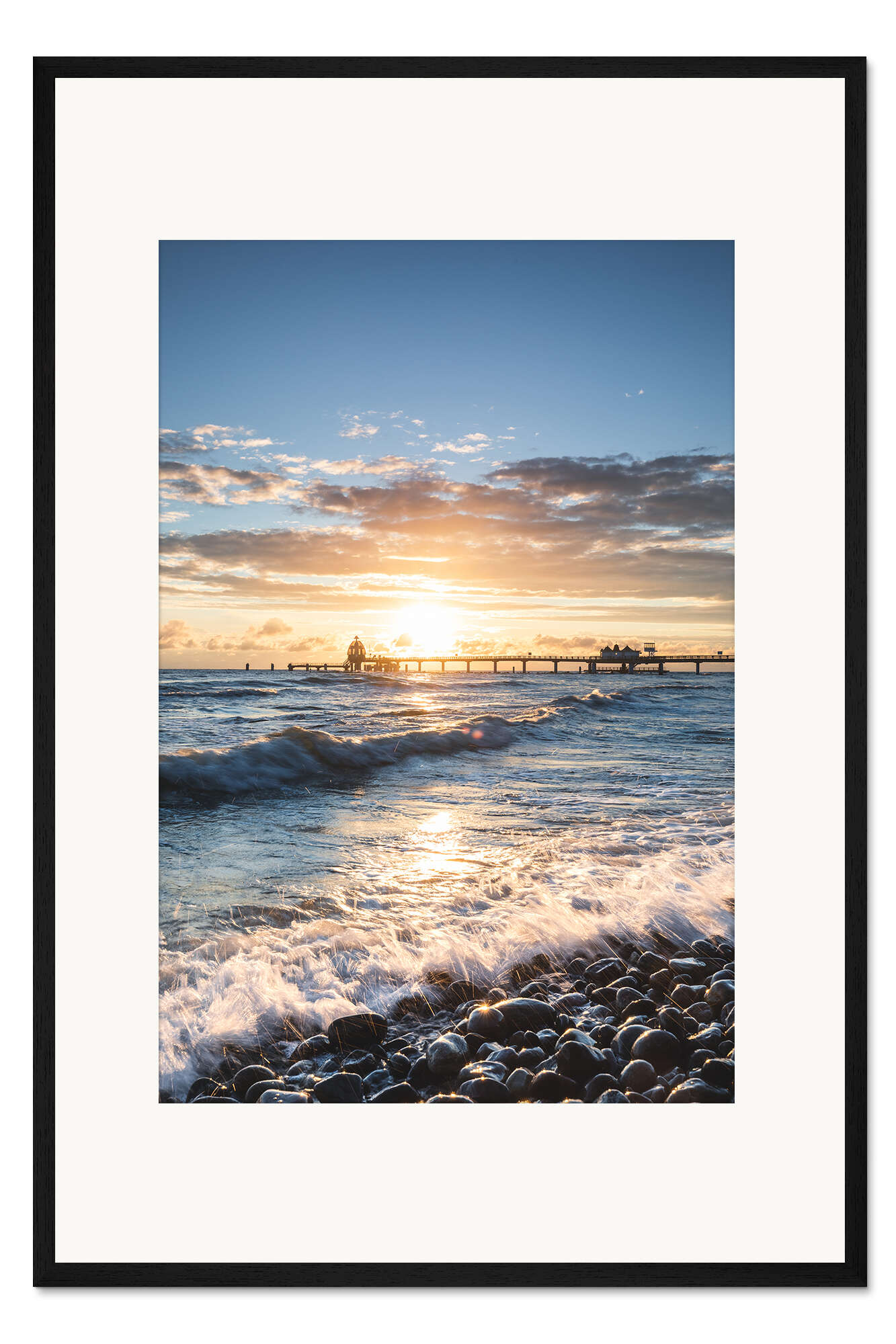 Posterlounge   Wandbilder   Fotografie   MUXPIX   Gerahmter Kunstdruck Brandung an der Seebrücke Sellin
