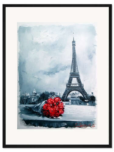 Posterlounge   Wandbilder   Sehenswürdigkeiten   Eiffelturm   Olha Darchuk   Gerahmter Kunstdruck Roter Rosen für die Liebsten