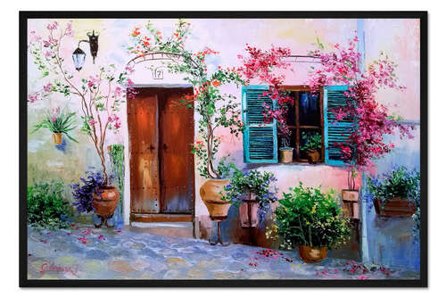 Posterlounge   Wandbilder   Architektur   Olha Darchuk   Gerahmter Kunstdruck Blühender Innenhof