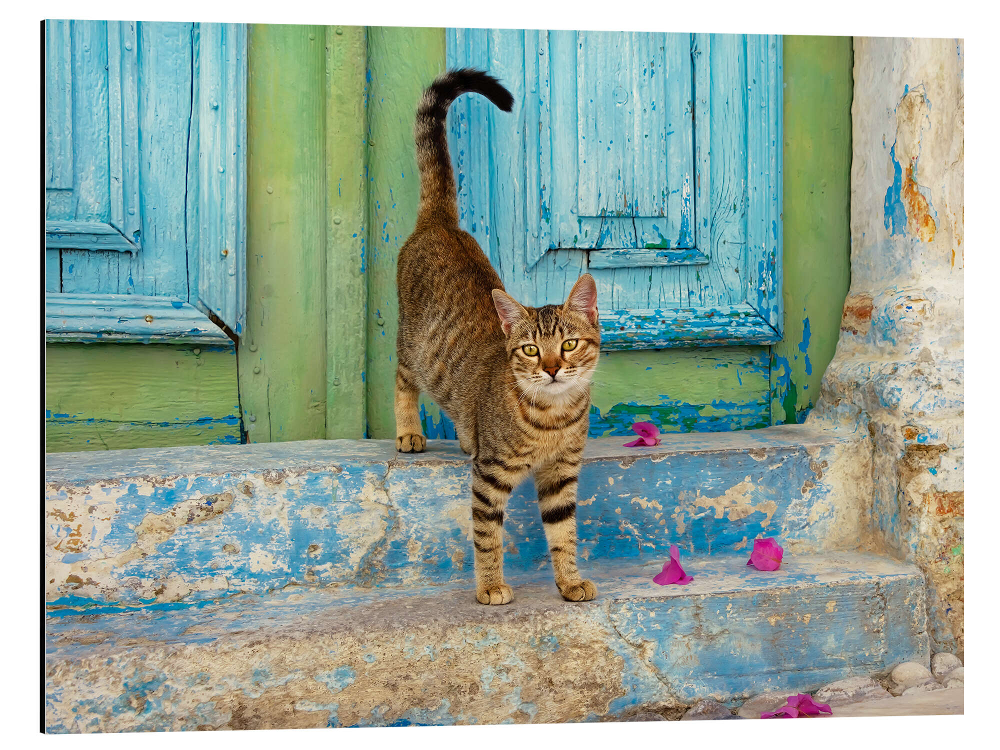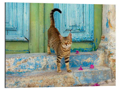 Magnettafel Kätzchen vor blauer Holztür