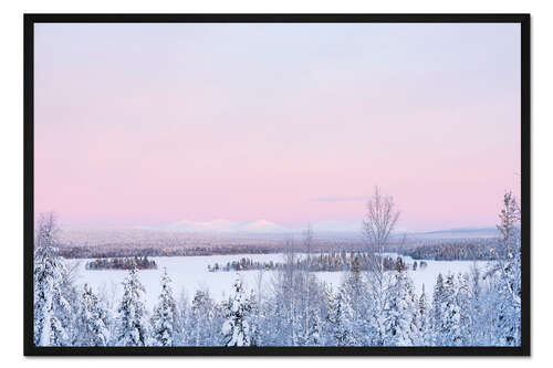 Posterlounge   Wandbilder   Fotografie   Matthew Williams-Ellis   Gerahmter Kunstdruck Rosa Sonnenuntergang über schneebedeckter Waldlandschaft