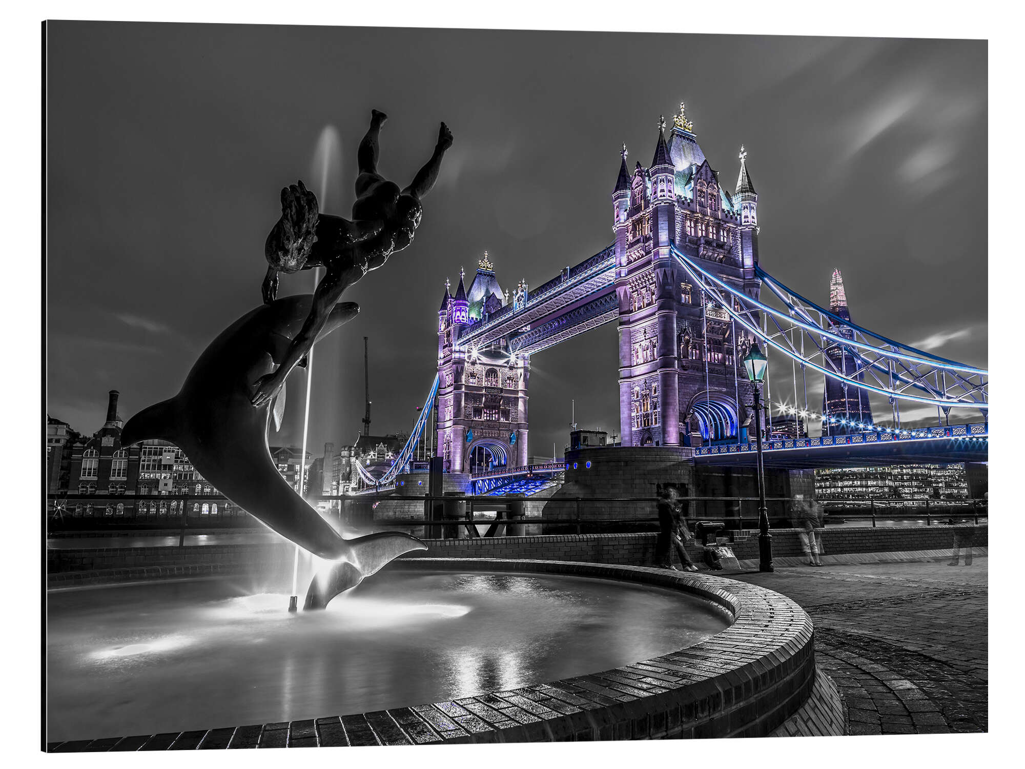 Magnettafel Tower Bridge, blau erleuchtet