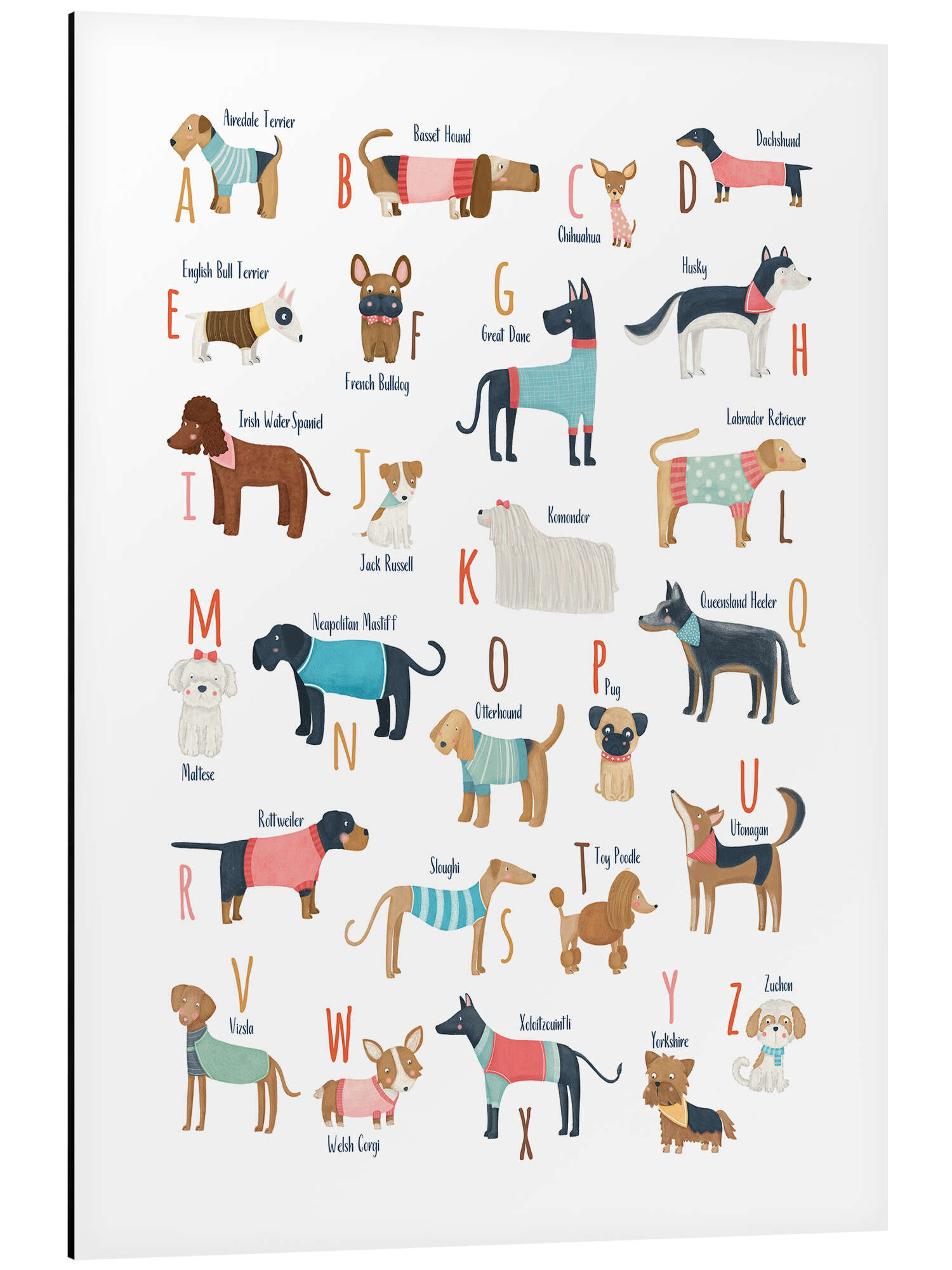 Posterlounge   Wandbilder   Kindergarten   Marta Munte   Magnettafel Hunde mit Pullover ABC