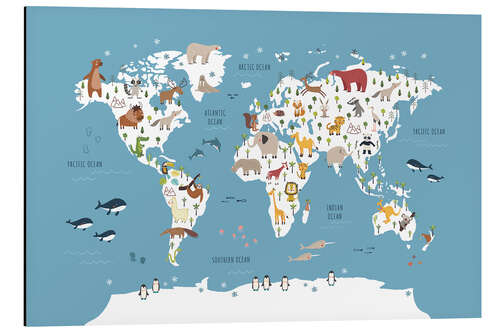 Posterlounge   Wandbilder   Lernen & Wissen   Marta Munte   Magnettafel Kinder Weltkarte mit Tieren (blau)