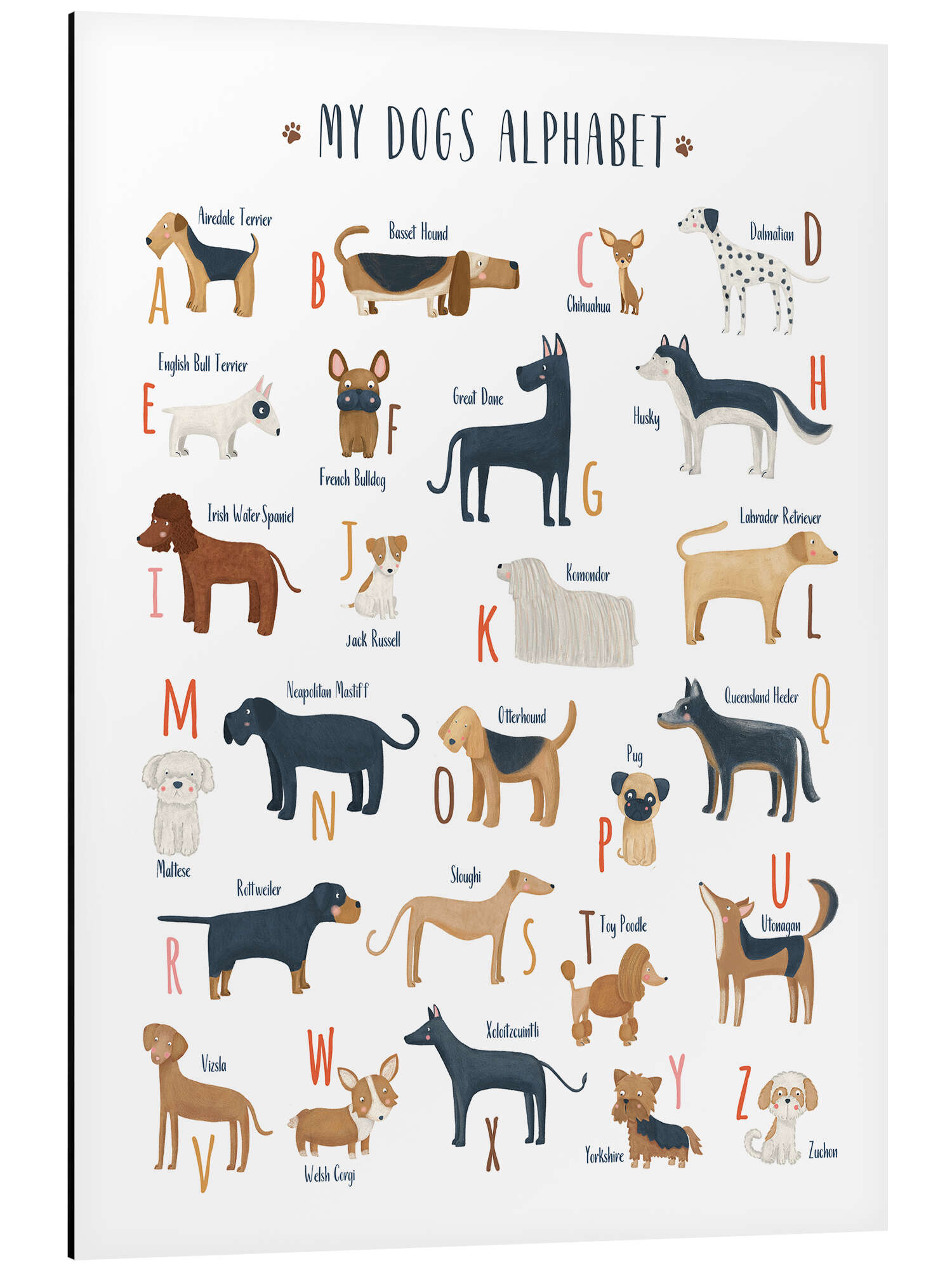 Posterlounge   Wandbilder   Illustration   Marta Munte   Magnettafel Mein Hunde ABC (englisch)