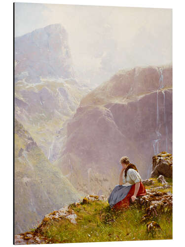 Magnettafel Frau in gebirgiger Landschaft