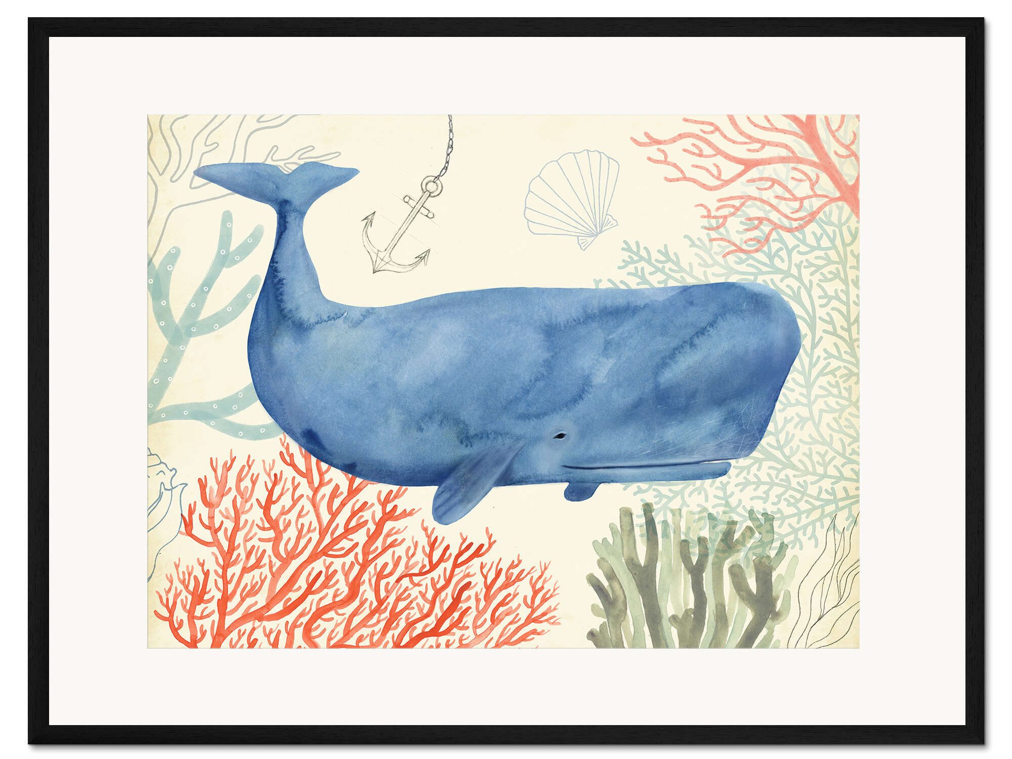 Posterlounge   Wandbilder   Maritim   Victoria Borges   Gerahmter Kunstdruck Wal im Unterwasserwald