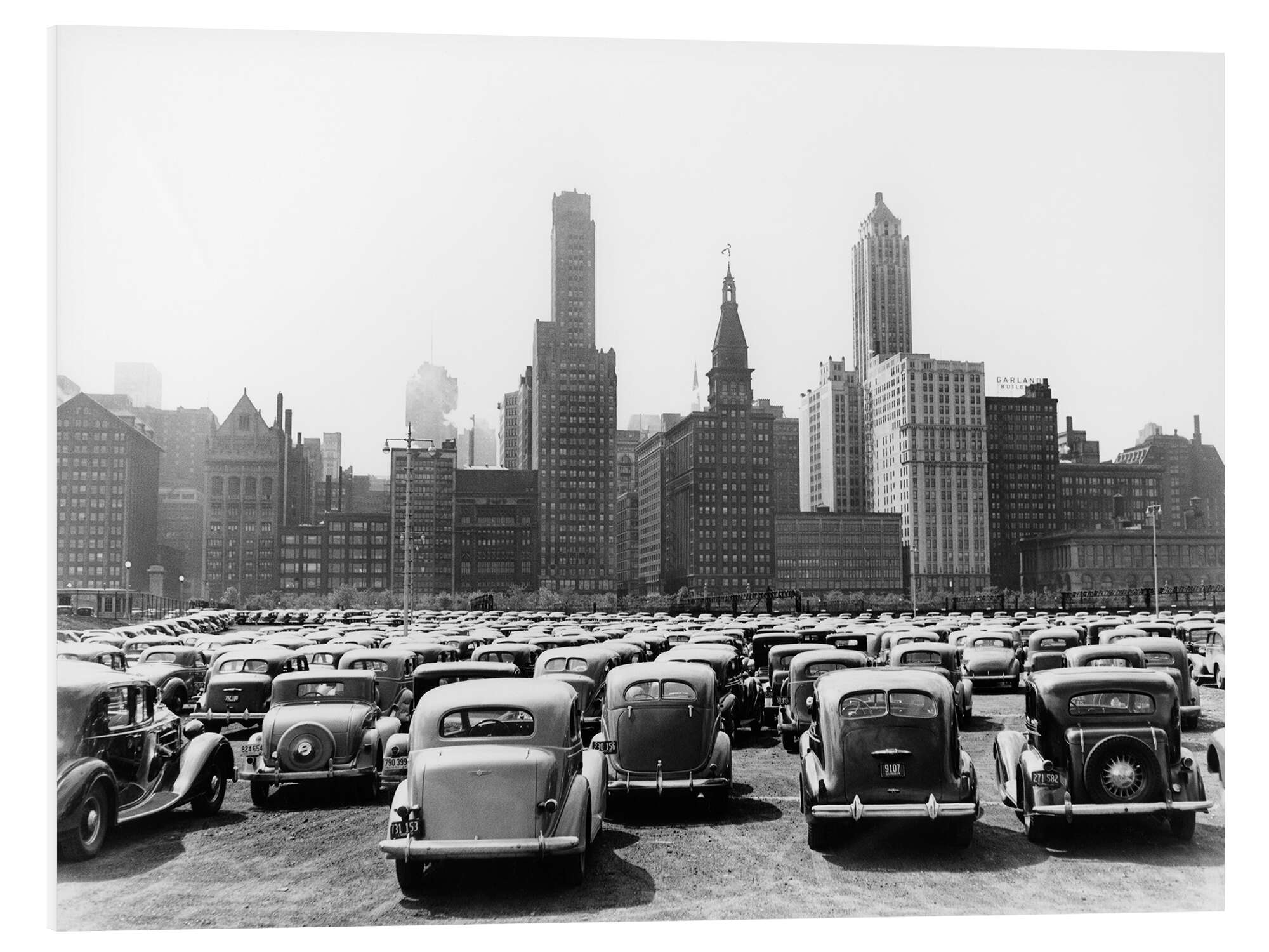 Hartschaumbild Oldtimer vor der Skyline von Chicago