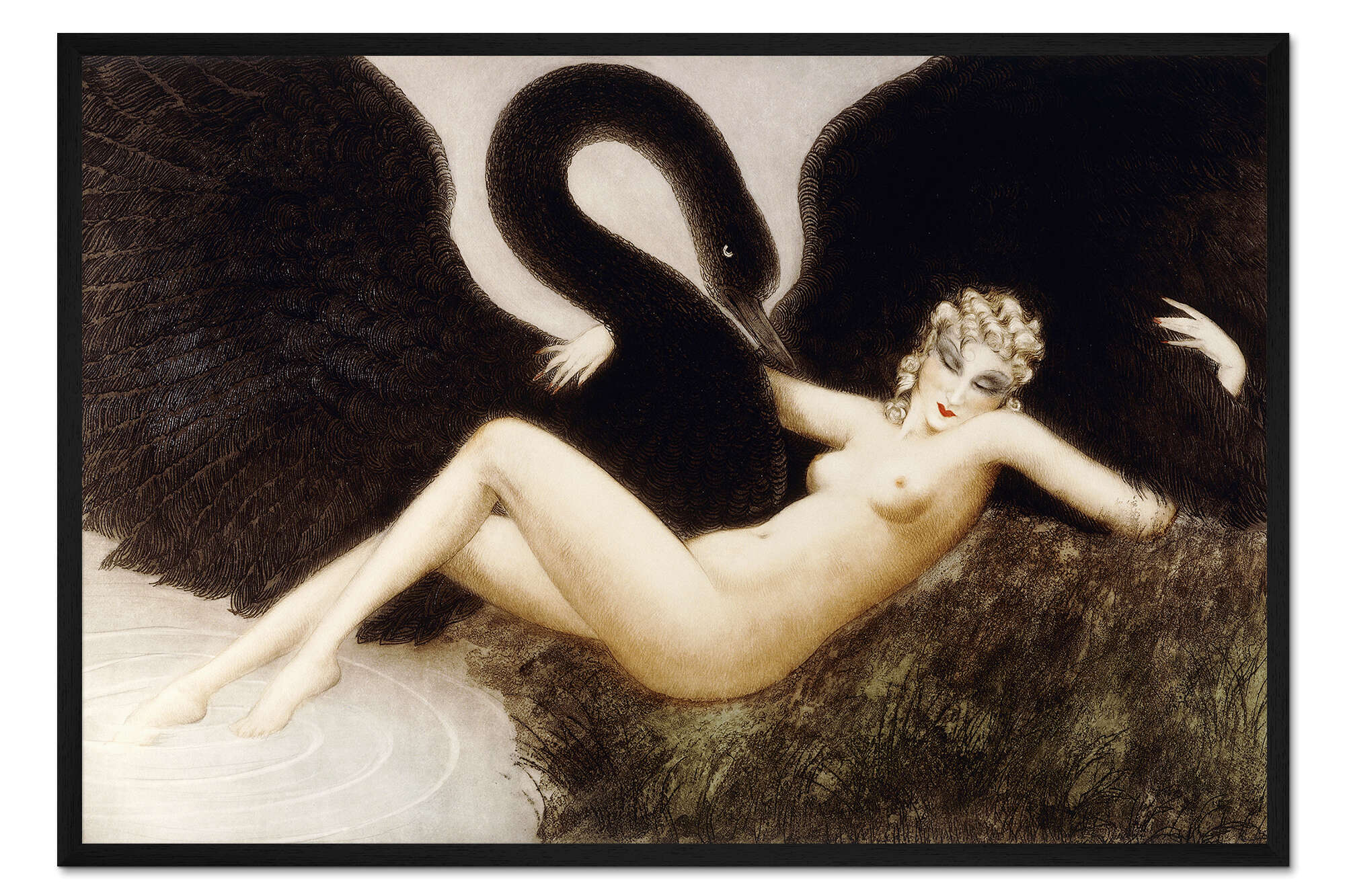 Posterlounge   Wandbilder   Tiere   Vögel   Schwäne   Louis Icart   Gerahmter Kunstdruck Leda und der Schwan
