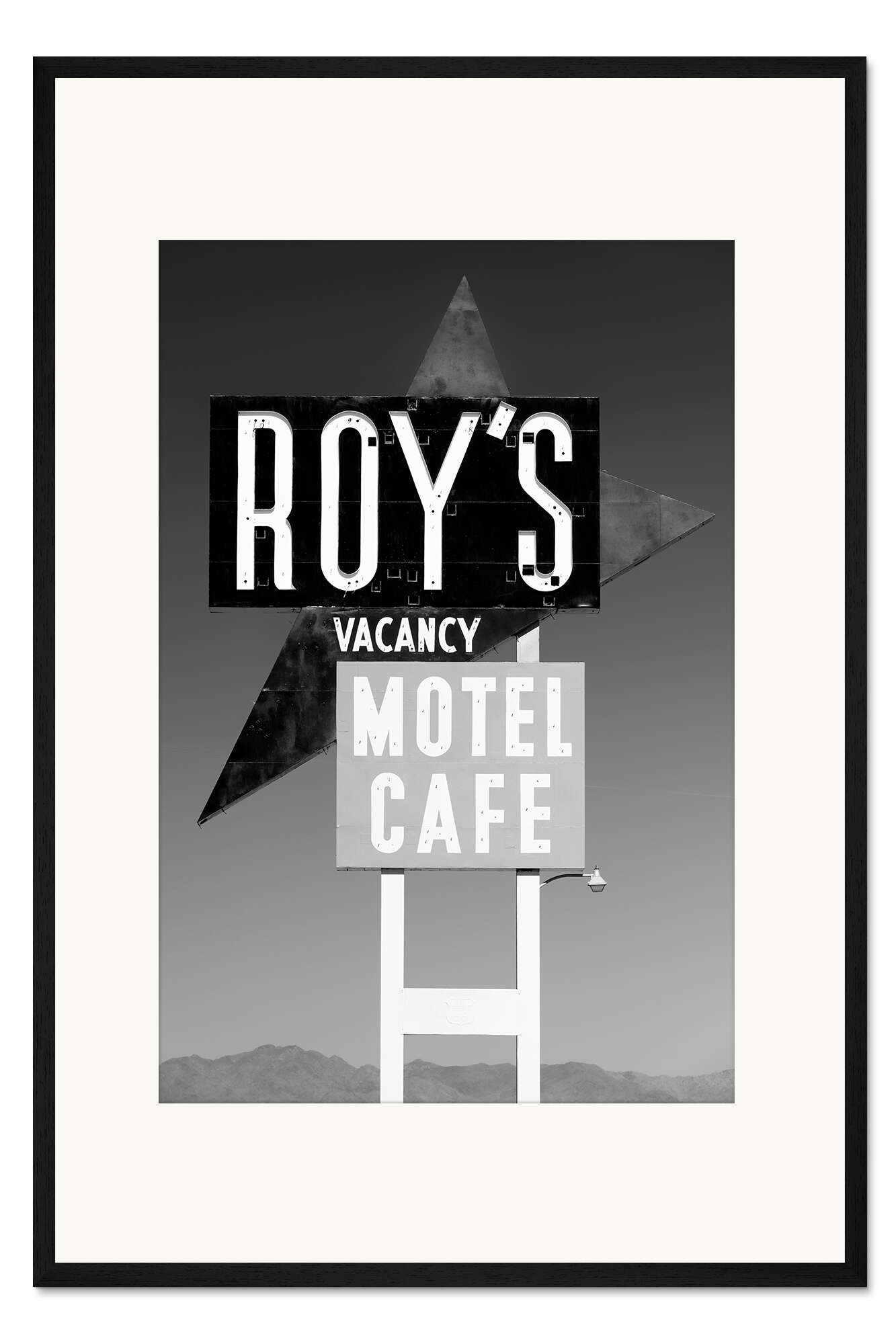 Posterlounge   Wandbilder   Schwarz-Weiß   Philippe HUGONNARD   Gerahmter Kunstdruck Schwarzes Arizona - Motel Cafe