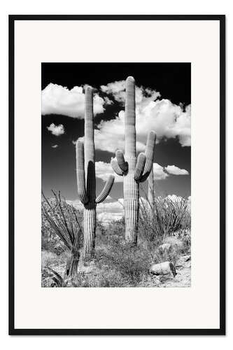 Posterlounge   Wandbilder   Schwarz-Weiß   Philippe HUGONNARD   Gerahmter Kunstdruck Schwarzes Arizona - Zwei Saguaro-Kakteen