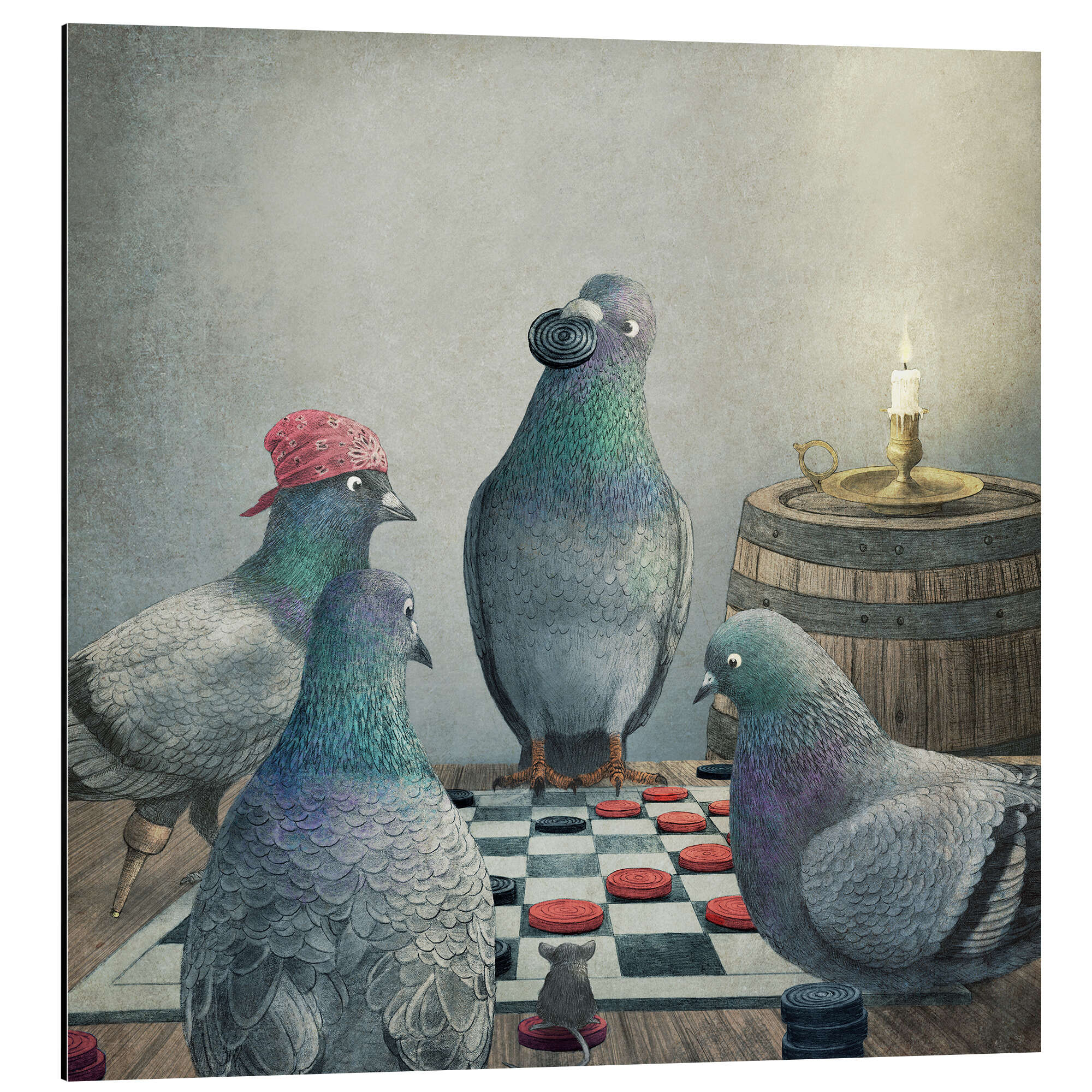 Posterlounge   Wandbilder   Illustration   Zeichnung & Skizze   Terry Fan   Magnettafel Tauben spielen Dame