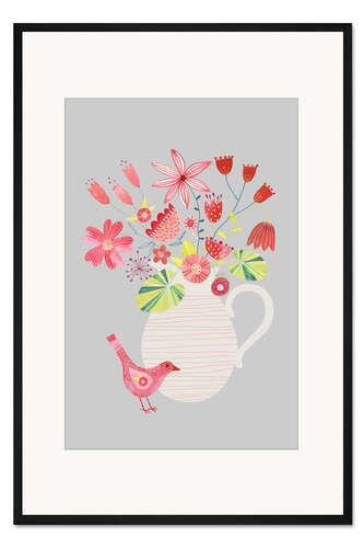 Posterlounge   Wandbilder   Illustration   Nic Squirrell   Gerahmter Kunstdruck Vogel mit einem Krug Blumen