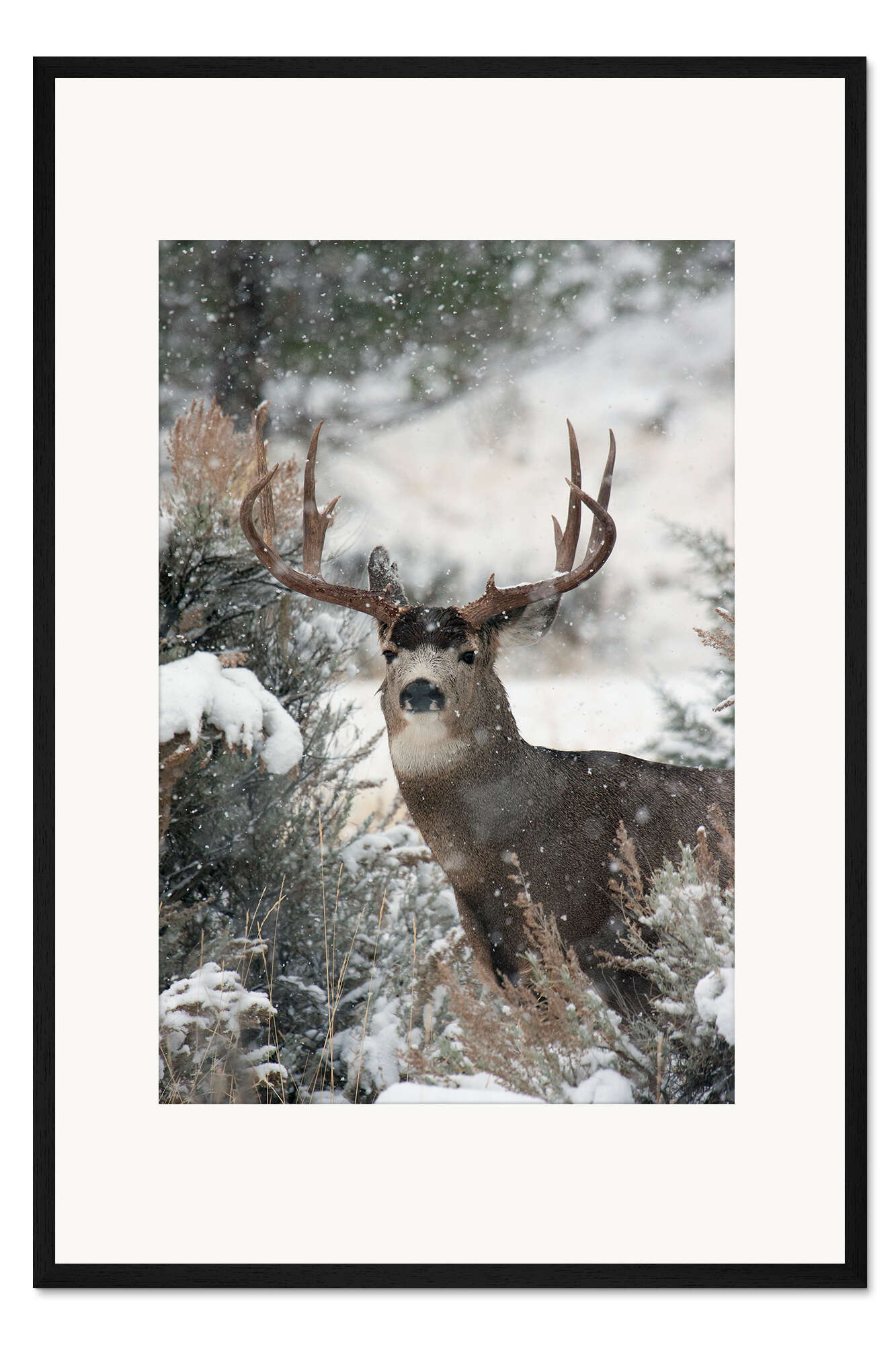 Posterlounge   Wandbilder   Fotografie   Ken Archer   Gerahmter Kunstdruck Maultierhirsch im Schnee