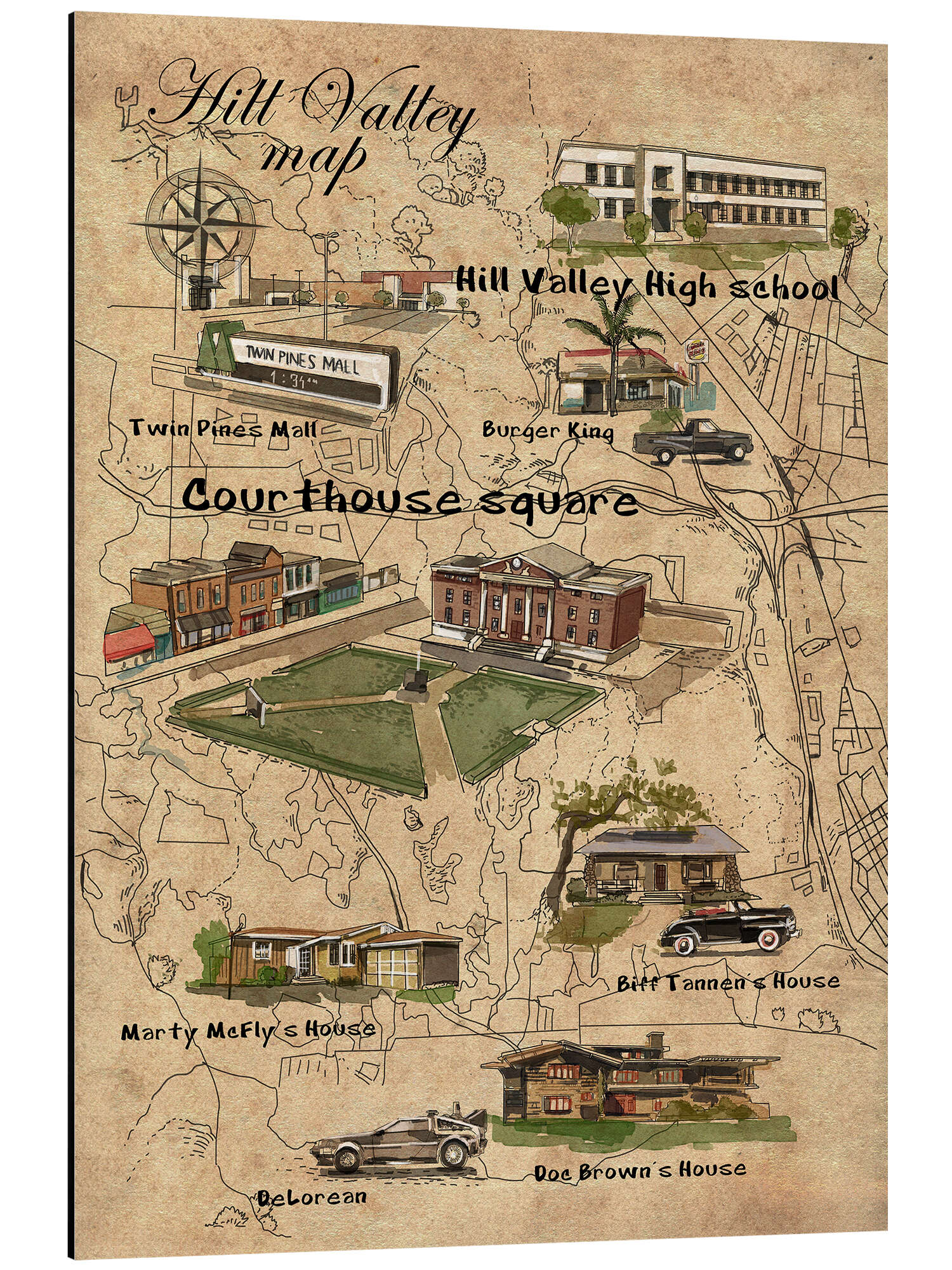 Posterlounge   Wandbilder   Filme   Artbase79   Magnettafel Hill Valley Filmkarte