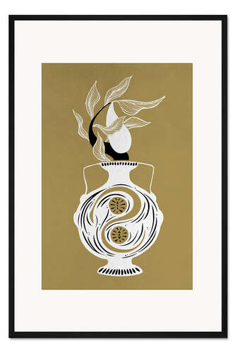 Posterlounge   Wandbilder   Malerei   Asiatische Kunst   Chromakane   Gerahmter Kunstdruck Zahar - Weiß-goldene Birne und Vase