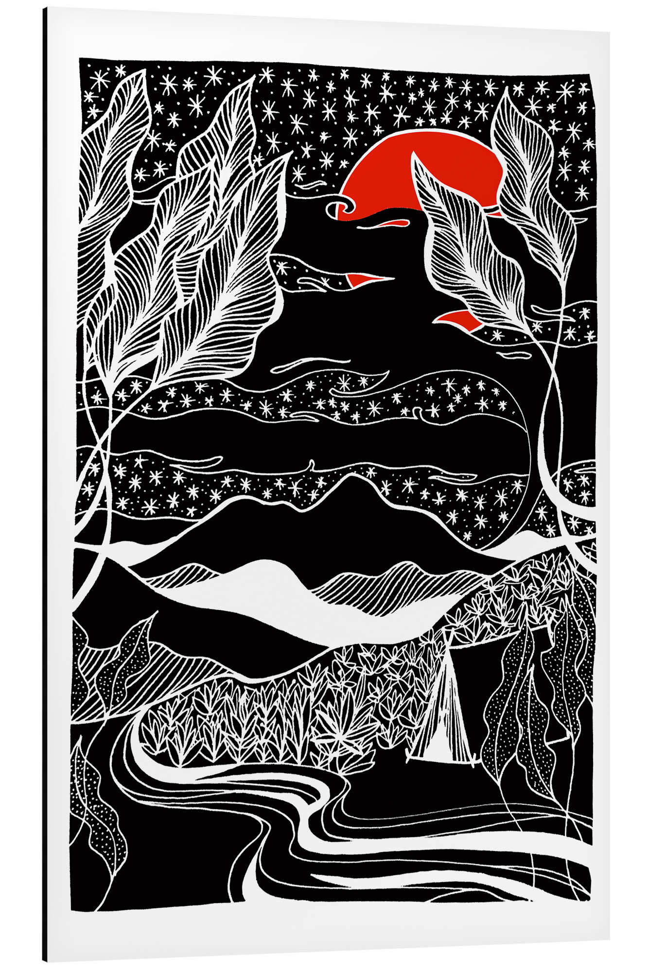Posterlounge   Wandbilder   Malerei   Asiatische Kunst   Chromakane   Magnettafel Unter den Sternen - Schwarz-weiße Camping-Berglandschaft