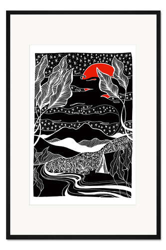 Posterlounge   Wandbilder   Malerei   Asiatische Kunst   Chromakane   Gerahmter Kunstdruck Unter den Sternen - Schwarz-weiße Camping-Berglandschaft