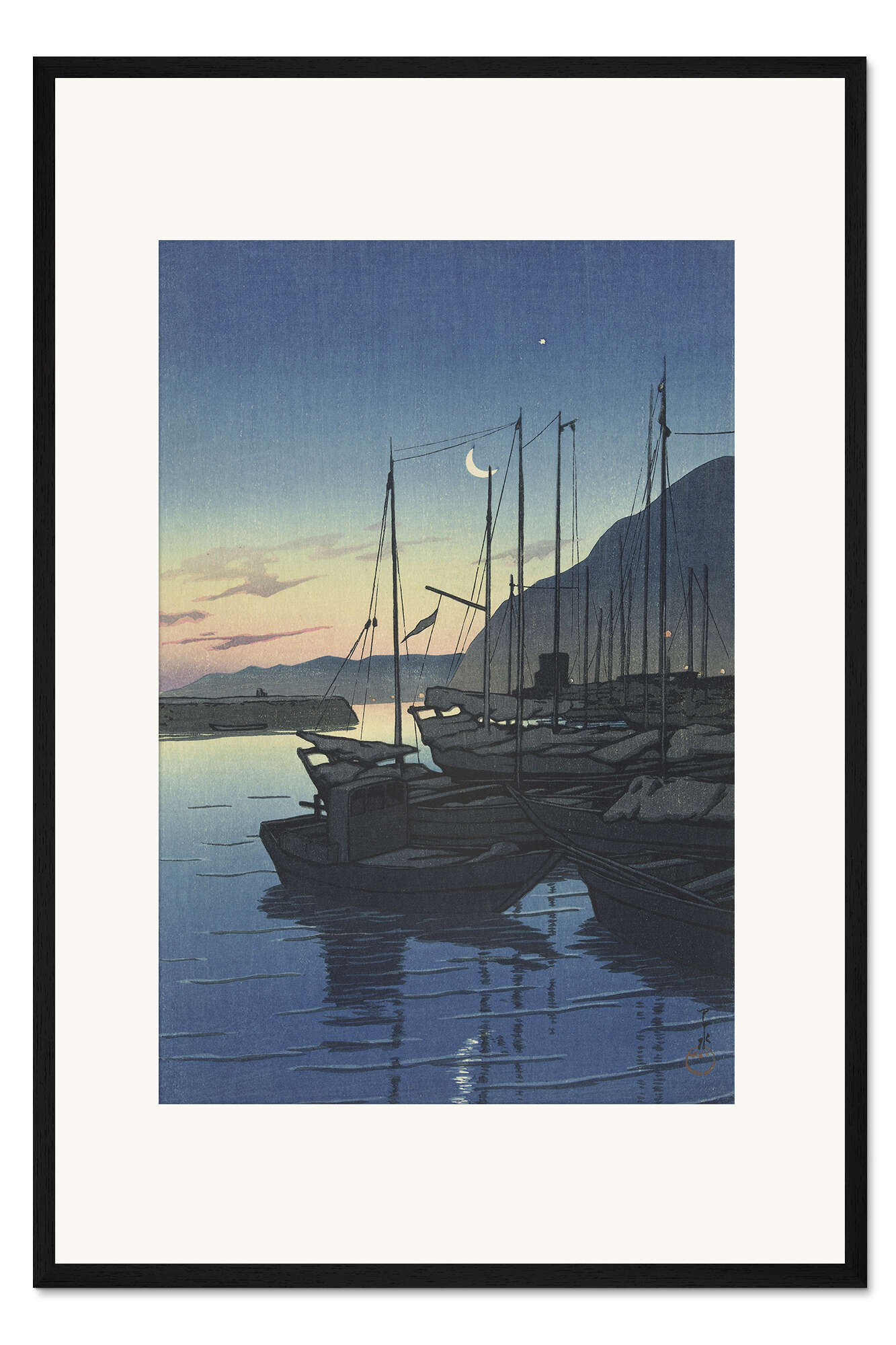 Posterlounge   Wandbilder   Illustration   Kawase Hasui   Gerahmter Kunstdruck Morgen in Beppu