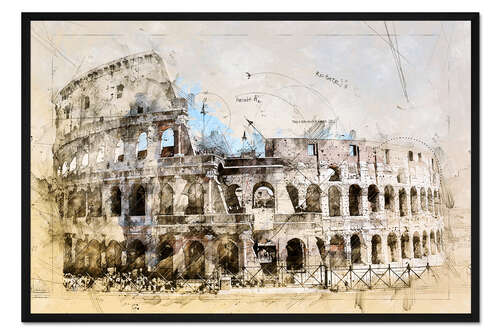 Posterlounge   Wandbilder   Illustration   Collage   Peter Roder   Gerahmter Kunstdruck Das Kolosseum in Rom
