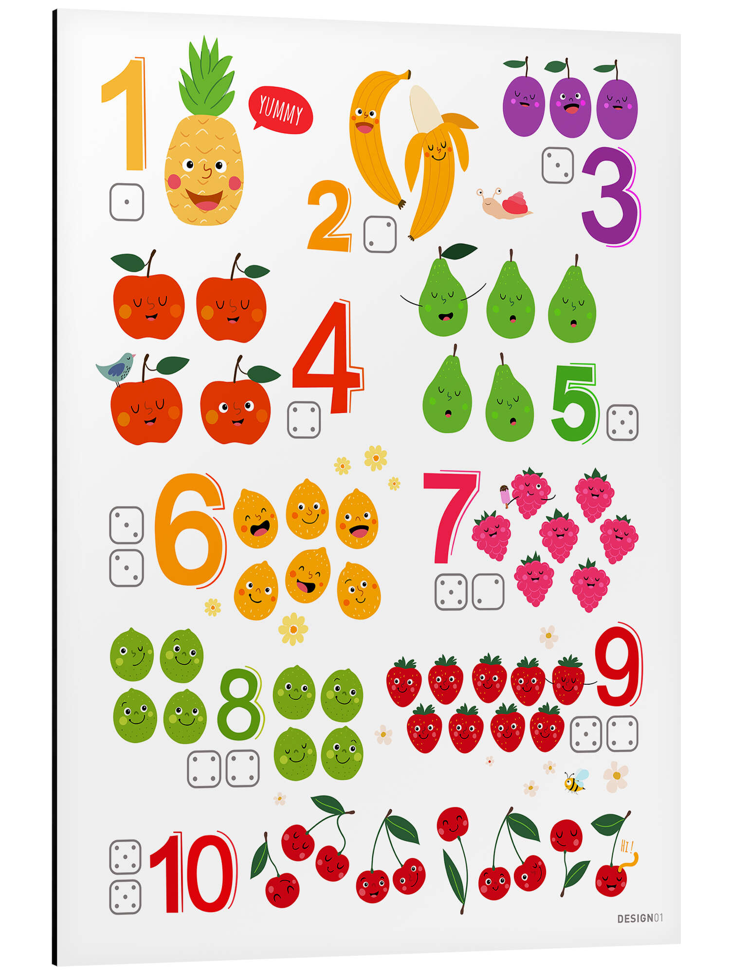 Posterlounge   Wandbilder   Illustration   Heyduda   Magnettafel Zahlen lernen mit frechen Früchten