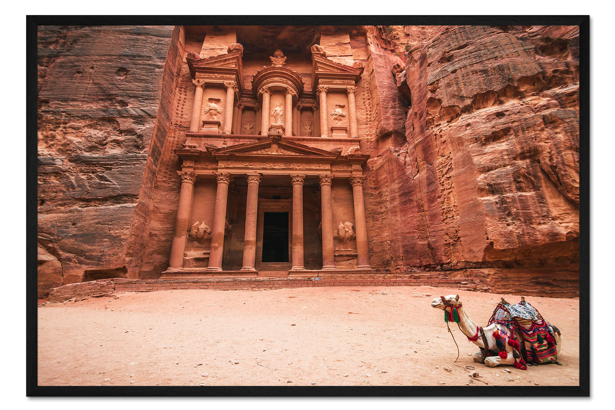 Posterlounge   Wandbilder   Landschaften   Wüsten   Chiara Salvadori   Gerahmter Kunstdruck Kamel vor der Schatzkammer von Petra
