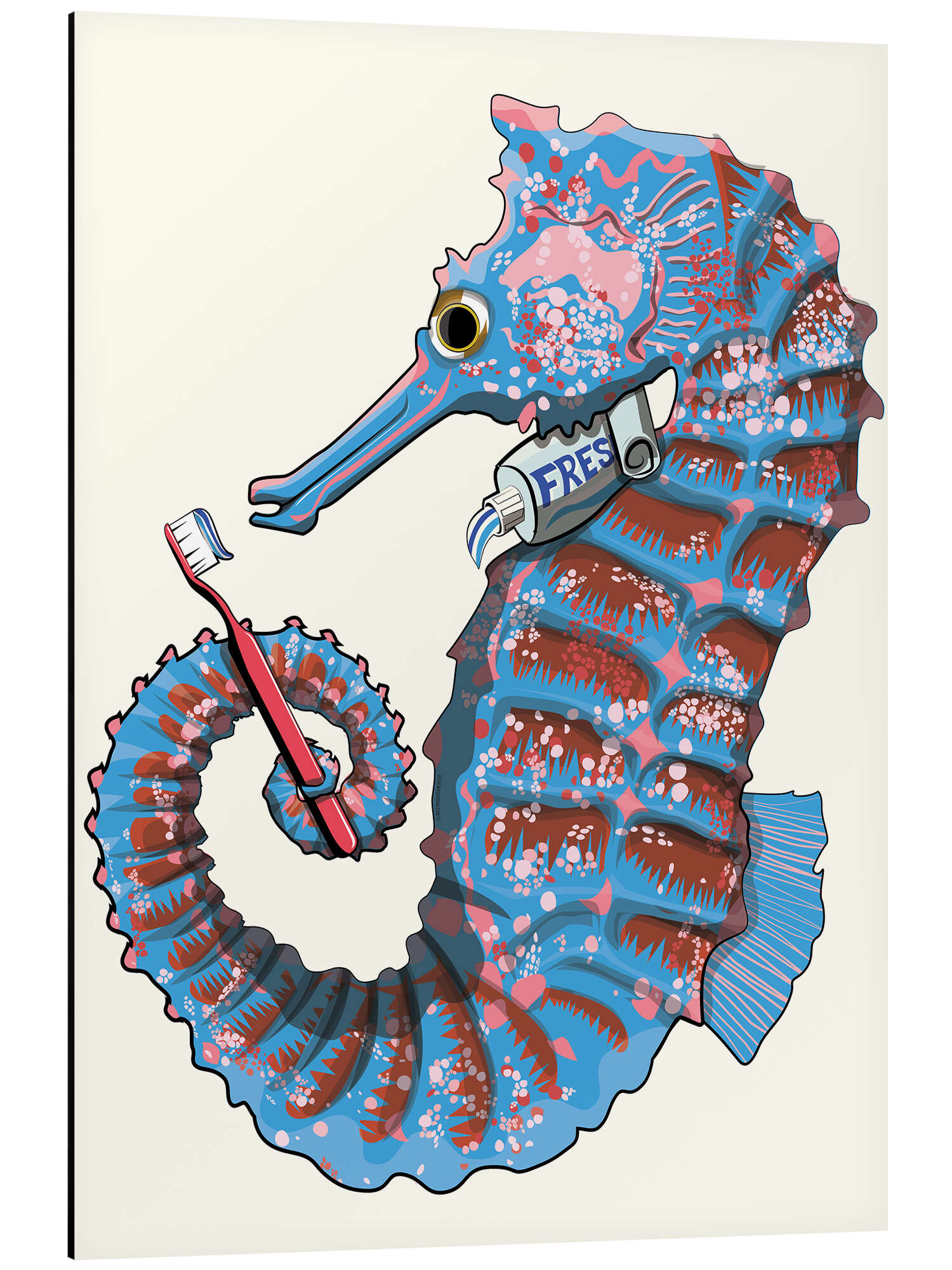Posterlounge   Wandbilder   Illustration   Wyatt9   Magnettafel Seepferdchen putzt sich die Zähne