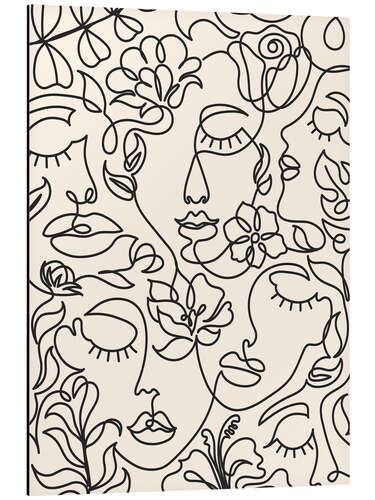 Posterlounge   Wandbilder   Boho   TAlex   Magnettafel Lineart-Gesichter mit Blumen I