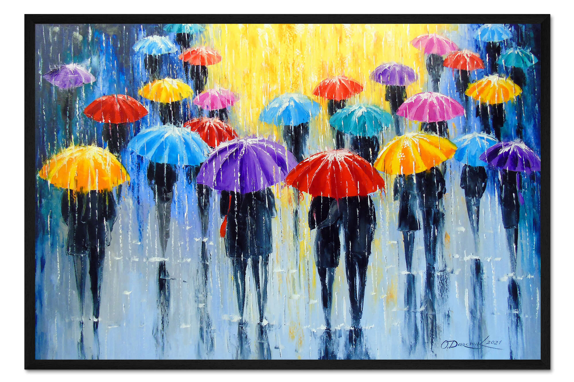 Posterlounge   Wandbilder   Menschen   Olha Darchuk   Gerahmter Kunstdruck Regen in bunten Regenschirmen