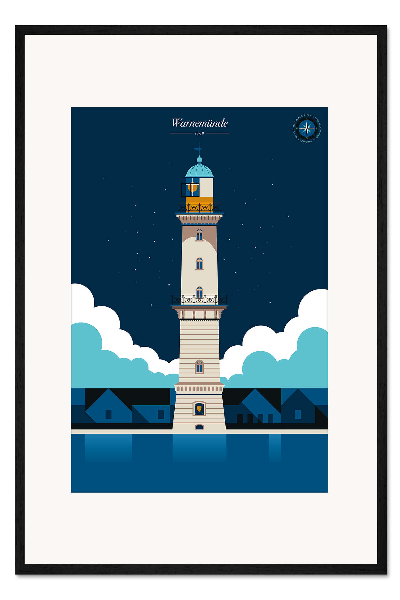 Posterlounge   Wandbilder   Illustration   Retro   Bo Lundberg   Gerahmter Kunstdruck Warnemünde Leuchtturm