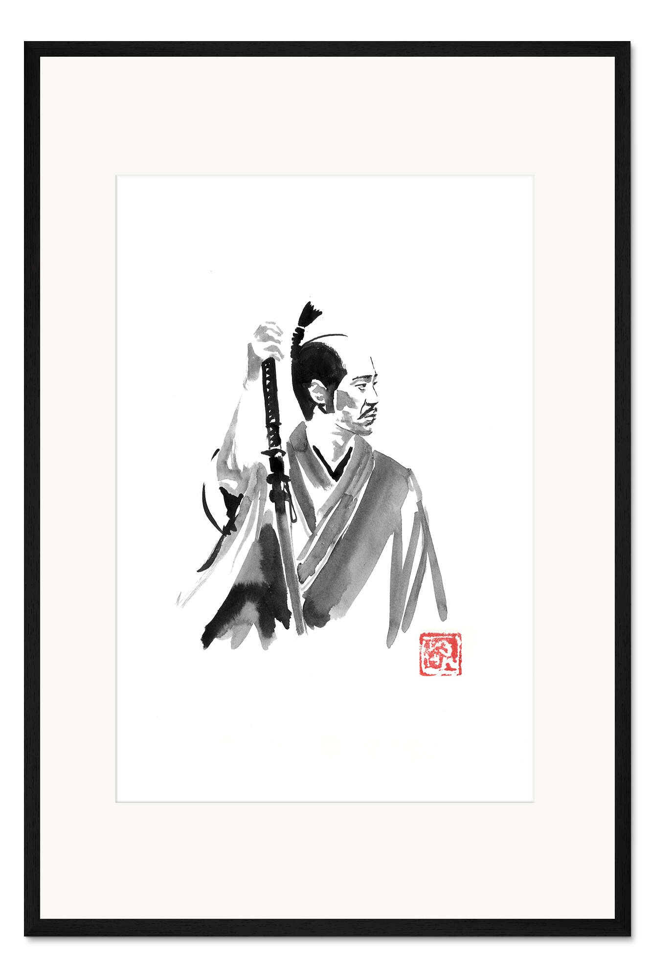 Posterlounge   Wandbilder   Malerei   Aquarell Malerei   Péchane   Gerahmter Kunstdruck Samurai, wartend