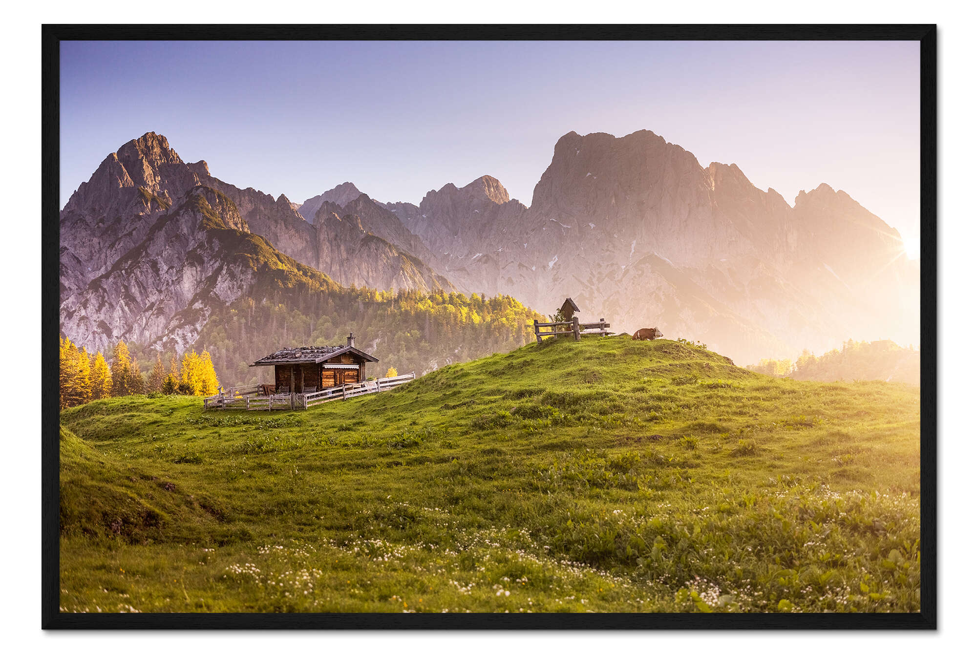 Posterlounge   Wandbilder   Fotografie   Fotomagie   Gerahmter Kunstdruck Sonnenaufgang auf der Alm