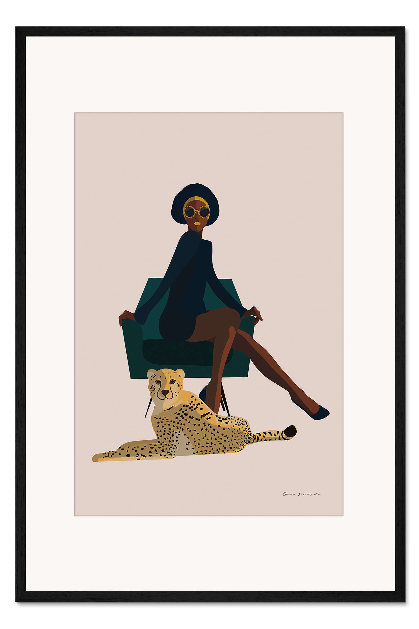 Posterlounge   Wandbilder   Illustration   Retro   Omar Escalante   Gerahmter Kunstdruck Powerfrau und ihr Gepard