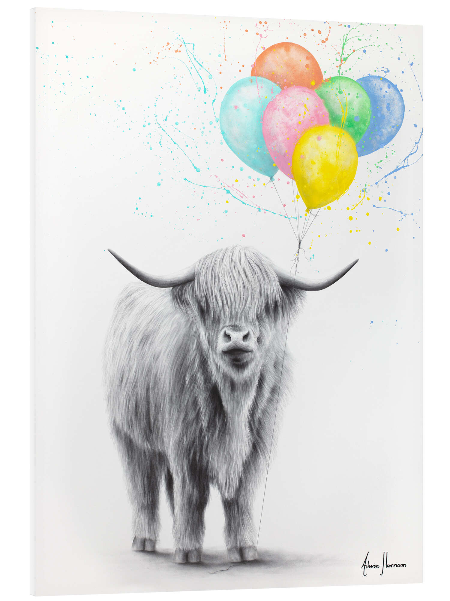 Hartschaumbild Das Hochlandrind und die Ballons