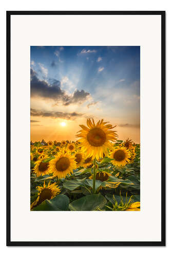 Posterlounge   Wandbilder   Fotografie   Melanie Viola   Gerahmter Kunstdruck Sonnenblumenfeld bei Sonnenuntergang