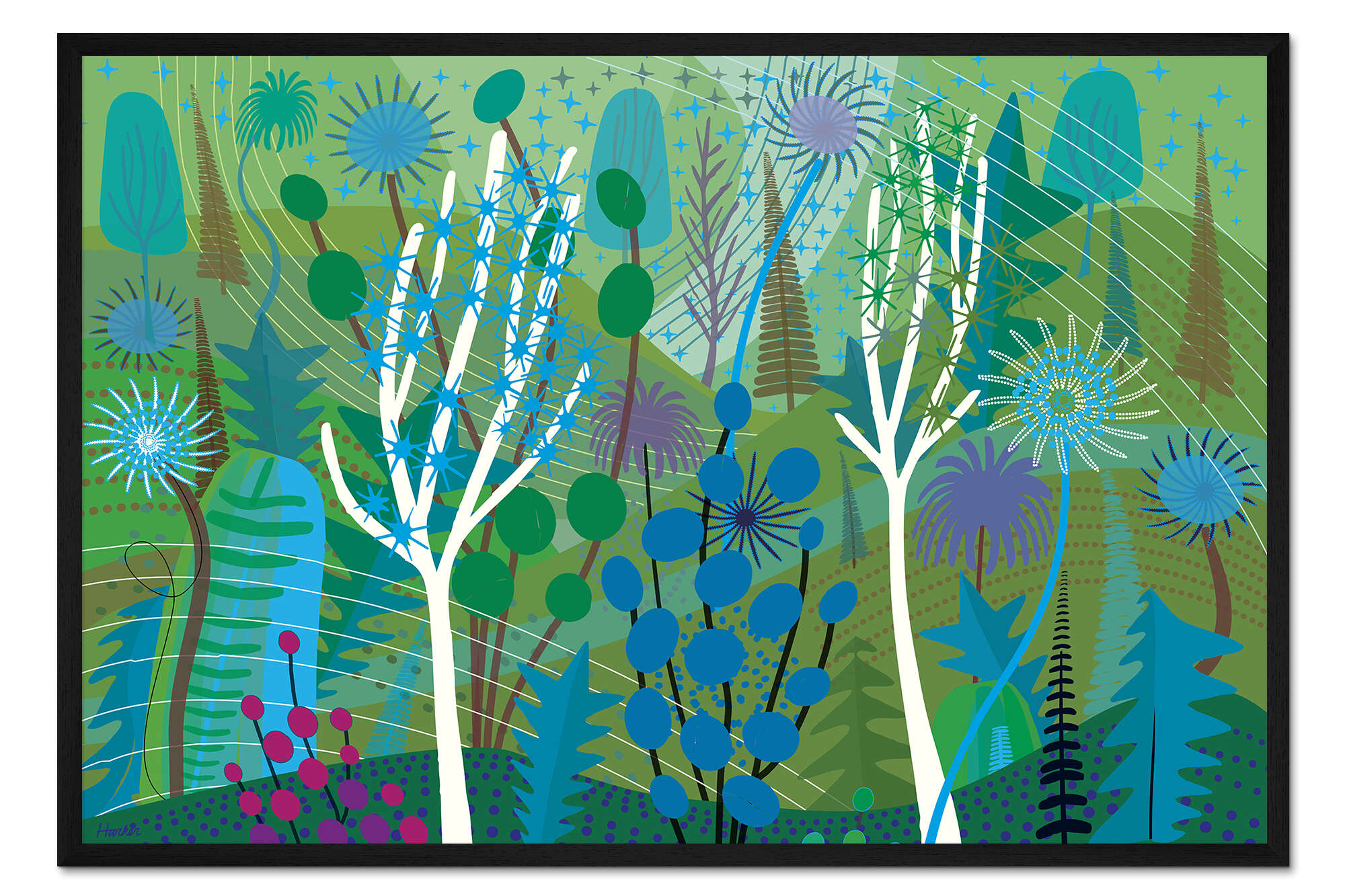 Posterlounge   Wandbilder   Illustration   Charles Harker   Gerahmter Kunstdruck Grüne moderne Waldlandschaft