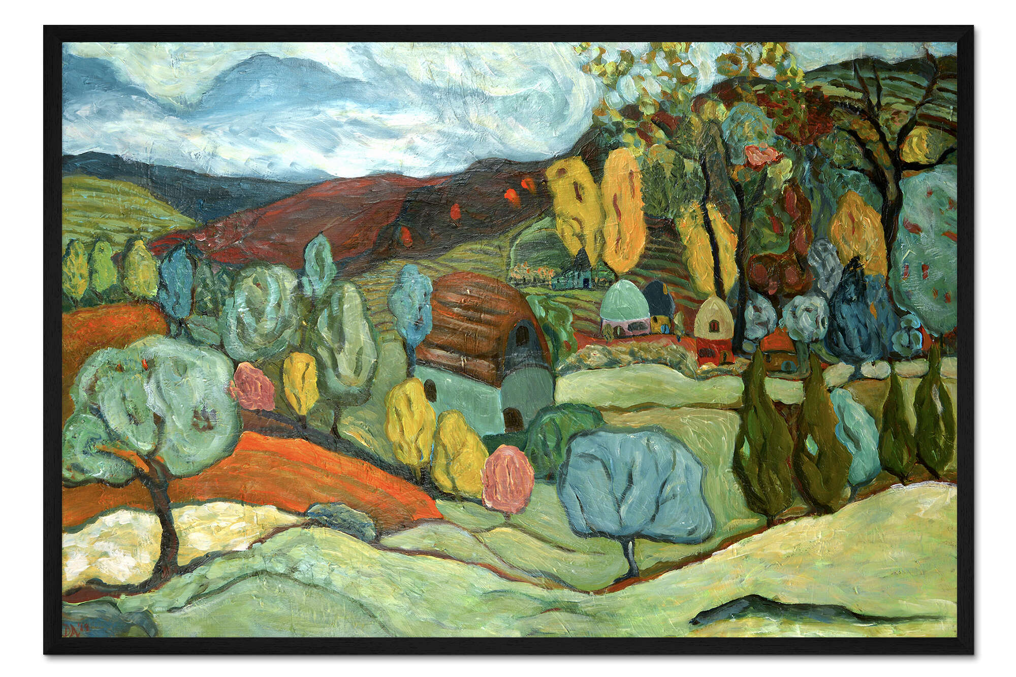 Posterlounge   Wandbilder   Illustration   Deborah Eve Alastra   Gerahmter Kunstdruck Dorf im Herbst
