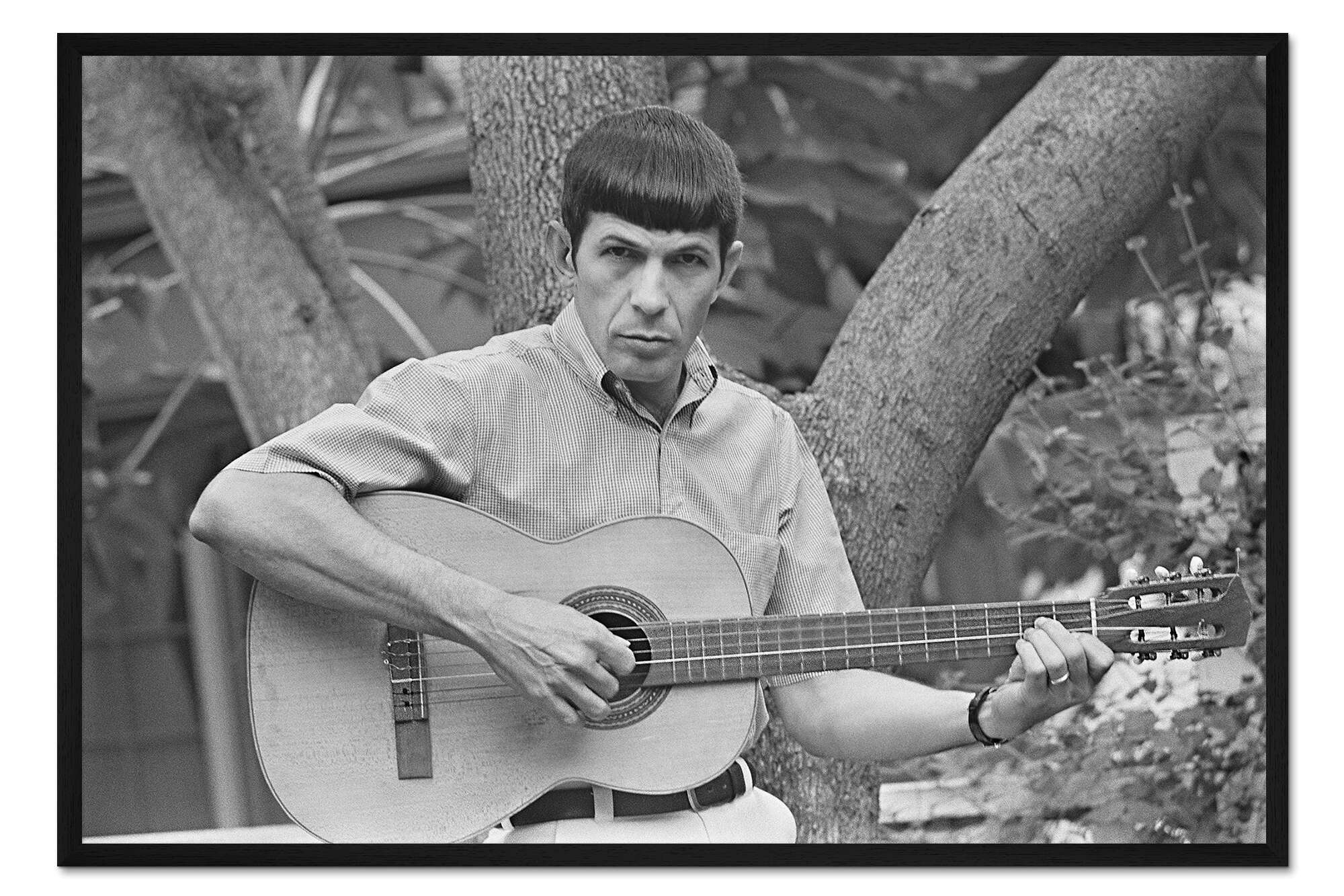 Posterlounge   Wandbilder   Schwarz-Weiß   Gerahmter Kunstdruck Leonard Nimoy mit Gitarre, 1966