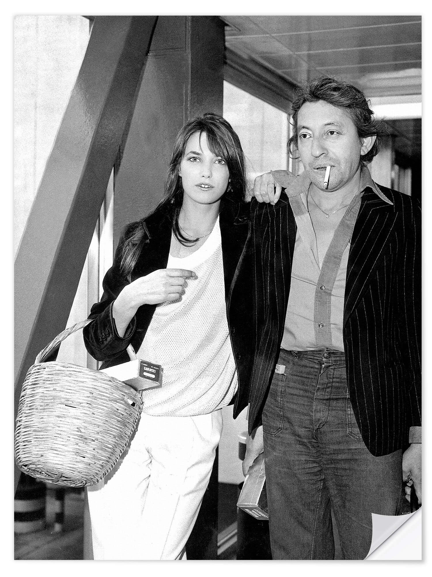 Posterlounge   Wandbilder   Schwarz-Weiß   Wandsticker Jane Birkin mit Korb und Serge Gainsbourg