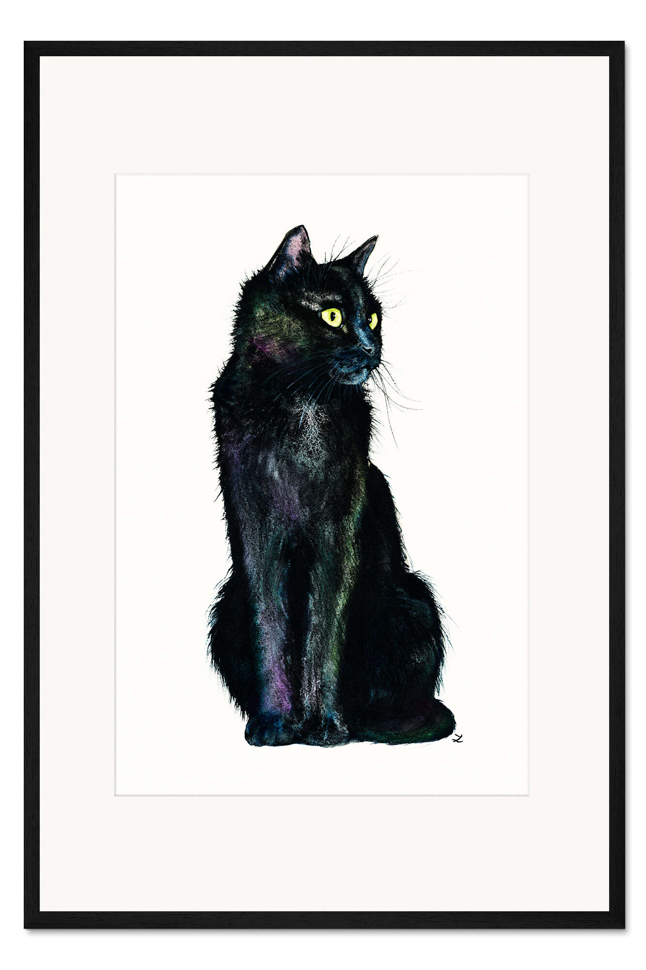 Posterlounge   Wandbilder   Malerei   Aquarell Malerei   Zaira Dzhaubaeva   Gerahmter Kunstdruck Schatten der schwarzen Katze