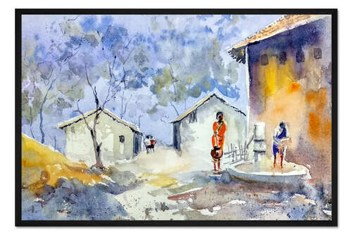 Posterlounge   Wandbilder   Malerei   Aquarell Malerei   Asha Sudhaker Shenoy   Gerahmter Kunstdruck Ein Dorf in Indien