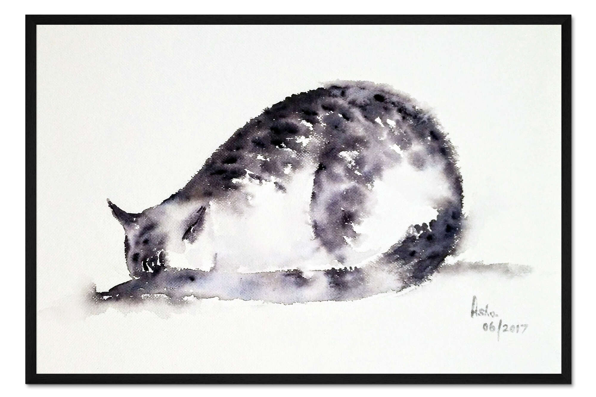 Posterlounge   Wandbilder   Malerei   Aquarell Malerei   Asha Sudhaker Shenoy   Gerahmter Kunstdruck Die schüchterne Katze