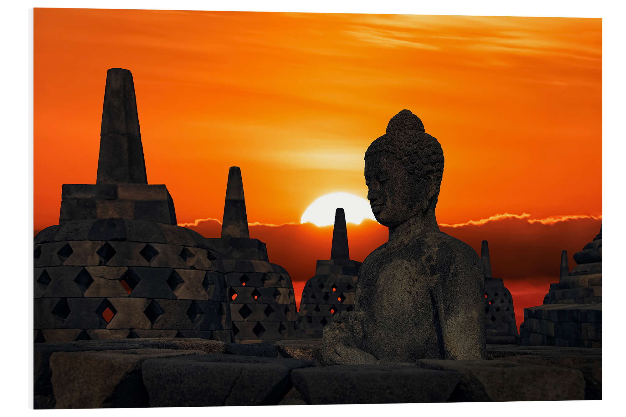 Hartschaumbild Borobudur Sonnenuntergang
